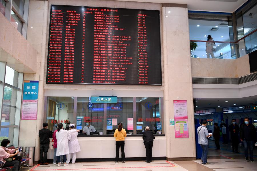 2020年11月18日,居民在福建省三明市第一医院医保办咨询、办理手续。(新华社记者姜克红摄)