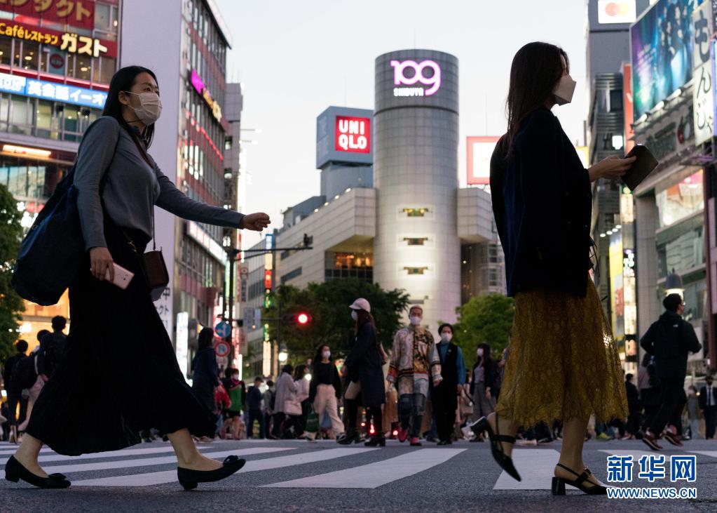 4月23日,人们佩戴口罩走在日本东京涩谷街头。新华社发(克里斯托弗·朱摄)