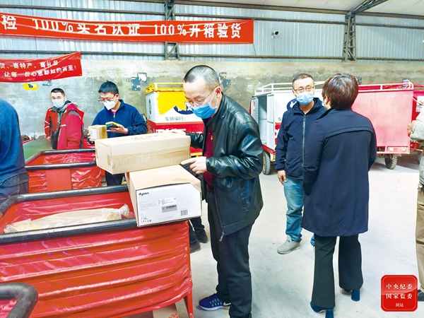 图为北京市纪委监委第五监督检查室近日在房山区某物流配送站了解物品寄送情况,收集问题线索。杨东 摄