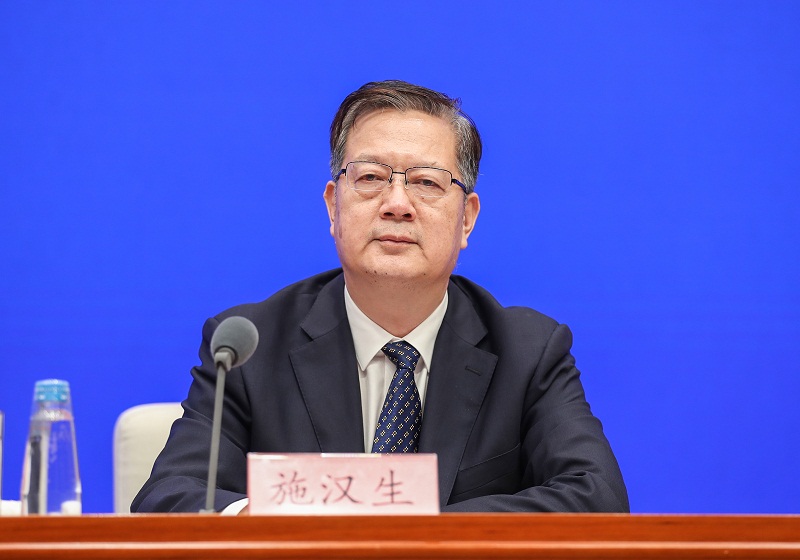 图为司法部公共法律服务管理局主要负责人施汉生在吹风会上介绍相关情况。 图片来源 国新网