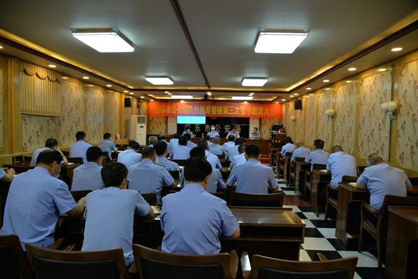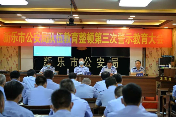 为切实增强全局全警自查自纠、整治顽瘴痼疾的自觉和决心,推动政法队伍教育整顿见真章、出成效,2021年6月4日上午,新乐市公安局召开了队伍教育整顿第三次警示教育大会,新乐市副市长、公安局党委书记、局长郭杰做讲话,党委副书记、副局长张君利主持。