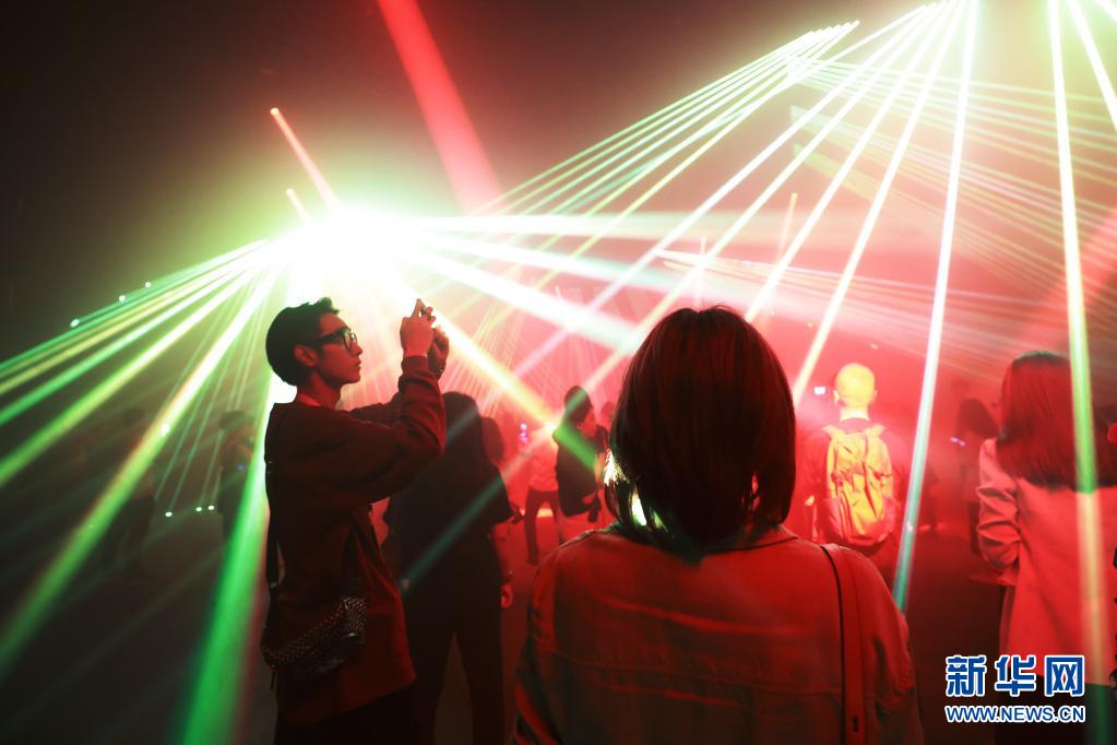 参观者在“只有河南·戏剧幻城”内观看、拍摄演出(5月13日摄)。新华社记者 李安 摄