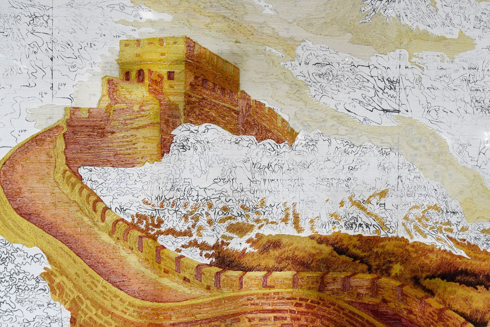 ↑青海圣源地毯集团有限公司正在制作的藏毯