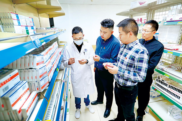 图为四川省阿坝州纪委监委工作人员检查系统整治后医院药品价格变化情况。孟波 摄