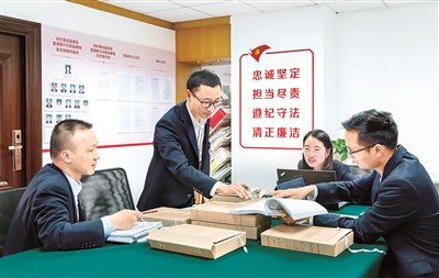 云南省纪委监委驻富滇银行纪检监察组结合驻在企业经营实际和风险特点开展监督,严肃查处以贷谋私、权钱交易、滥用职权违规审批等腐败行为。图为该纪检监察组工作人员在研究讨论案情。(驻富滇银行纪检监察组供图)