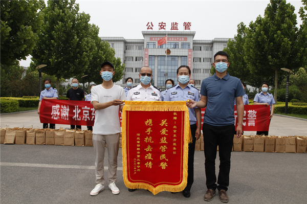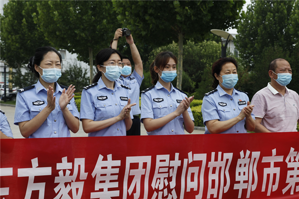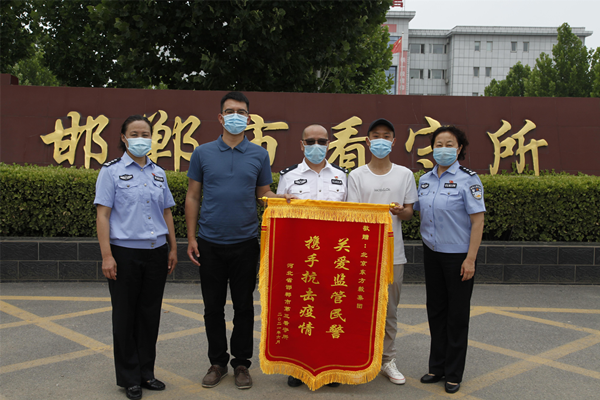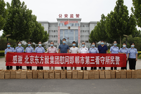 河北省邯郸市公安局监管支队负责人李建洲、第三看守所所长肖增梅、政委齐亚芳代表全体民警、辅警对前来慰问的北京东方毅集团表示衷心的感谢。所长肖增梅、政委齐亚芳向北京东方毅集团赠送了锦旗,李建洲同志代表市公安局监管党委号召:全体监管民警一定要以这次慰问为契机。真抓实干、奋勇争先,牢记入党誓言、不忘从警初心。坚持以习近平新时代中国特色社会主义思想为指导,坚守正确的世界观、人生观和价值观。增强“四个意识”、坚定“四个自信”,做到“两个维护”。共建和谐社会,以优异成绩迎接建党100周年。