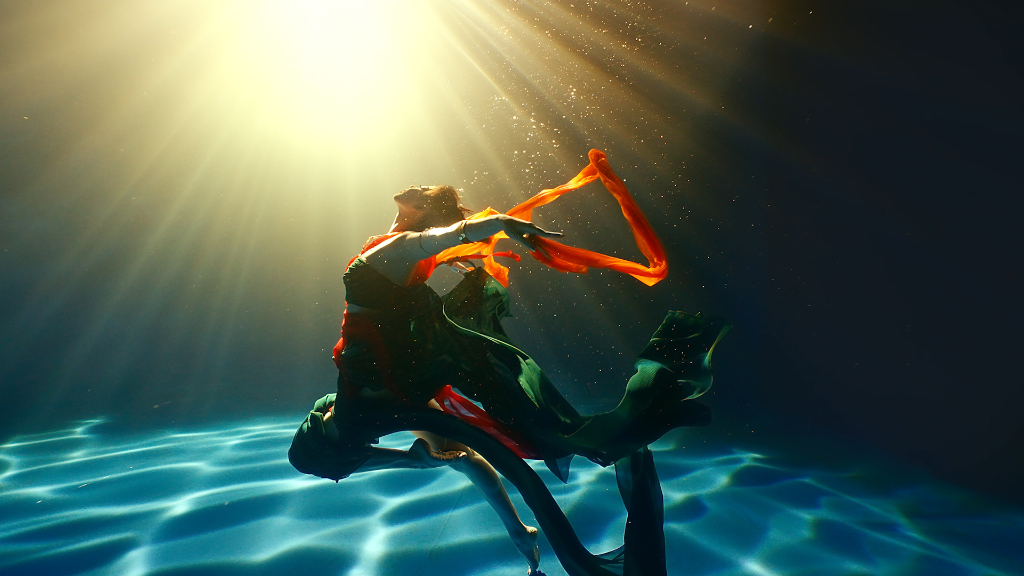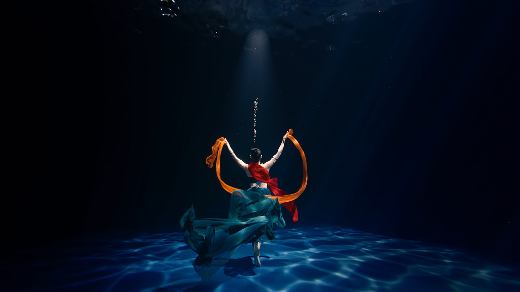 演员在演绎水下飞天舞蹈《洛神水赋》(河南广播电视台提供)。新华社发
