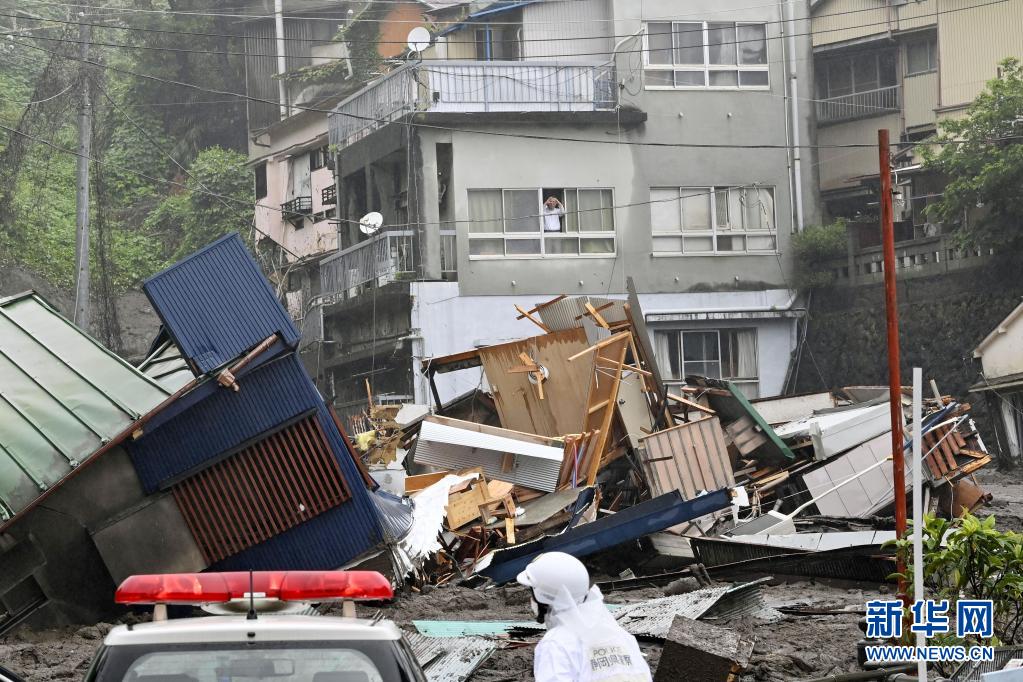 这是7月3日在日本静冈县热海市拍摄的泥石流灾害现场。新华社/共同社