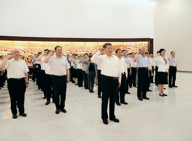 参观结束时,面向鲜红的中国共产党党旗,唐一军带领党员领导干部重温入党誓词,以铿锵有力的誓言表达对党的无限忠诚和为共产主义奋斗终身的坚定决心。
