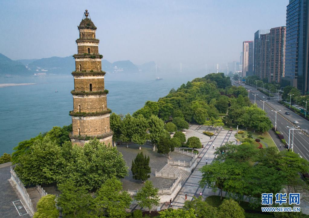 湖北省宜昌市江滩公园一角(2018年4月30日摄,无人机照片)。新华社记者 肖艺九 摄