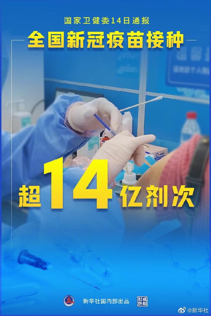 国家卫健委14日通报,全国新冠疫苗接种超14亿剂次。专家提醒,要时刻紧绷疫情防控这根弦,不能麻痹大意。(海报设计张晨光)