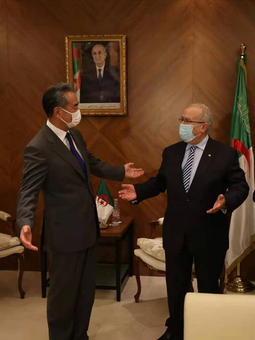 当地时间2021年7月19日,国务委员兼外长王毅在阿尔及尔同阿尔及利亚外长拉马拉举行会谈。
