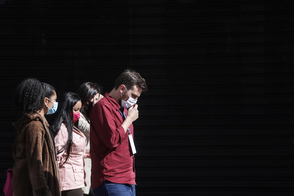 7月8日,戴口罩的行人走过巴西圣保罗街头。(新华社发,拉赫尔·帕特拉索摄)