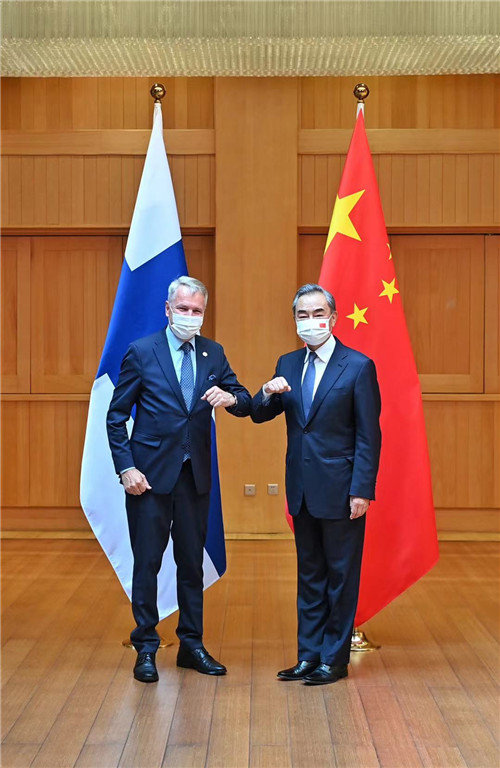 王毅表示,芬兰是最早同新中国建交的西方国家之一,相互尊重、友好合作始终是中芬关系的主旋律。面对新冠肺炎疫情,双方相互支持,相互帮助,巩固深化了两国友谊。中方赞赏芬方不久前发布新版对华行动计划强调加强对华合作,愿同芬方加强战略规划对接,实现更大互利共赢,为促进地区和世界和平与发展作出更多贡献。