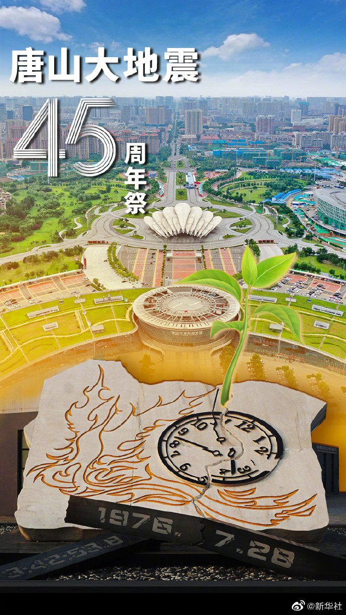 今天,唐山大地震45周年。一起发条微博,祭奠逝去的同胞,也祝福这座重生的城市。