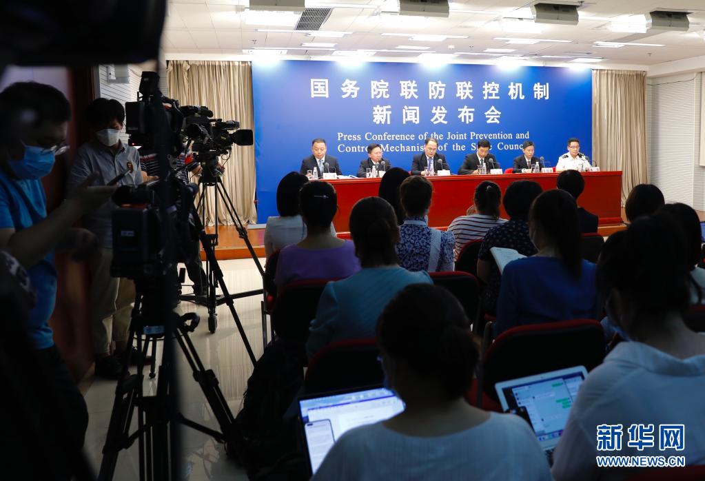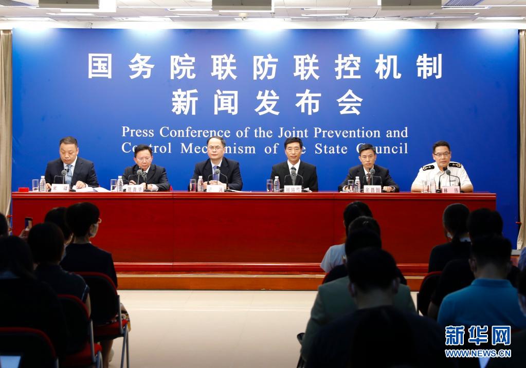 8月5日,国务院联防联控机制在北京召开新闻发布会,教育部、工信部、文化旅游部、卫生健康委、海关总署相关司局负责同志出席发布会,介绍进一步加强疫情防控有关情况,并答记者问。新华社记者 张玉薇 摄