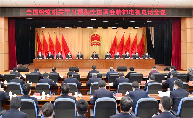 3月17日,最高人民检察院召开全国检察机关学习贯彻全国两会精神电视电话会议,最高人民检察院党组书记、检察长应勇出席会议并讲话。