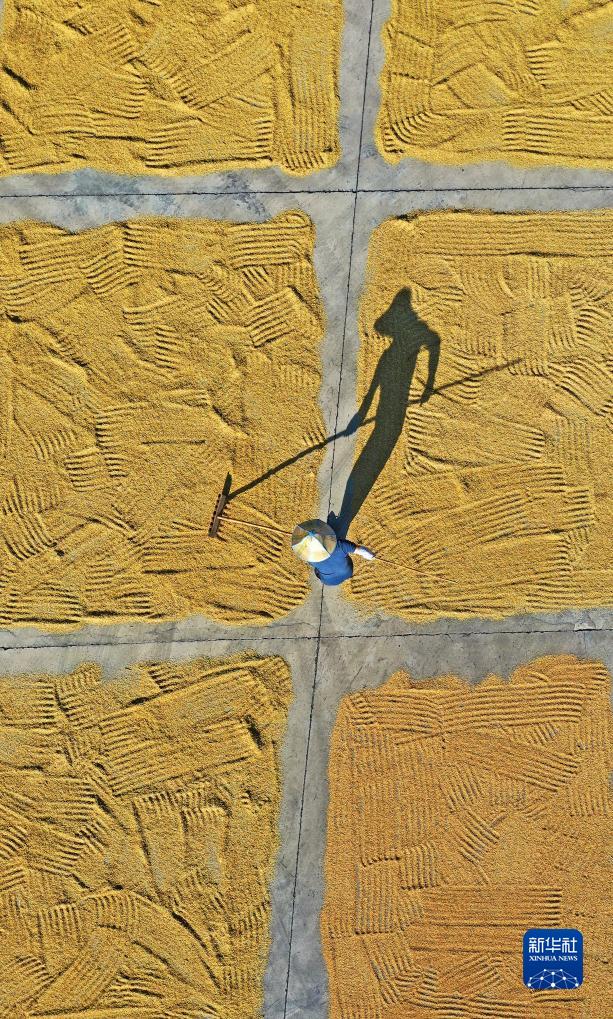 金秋十月,各地农民忙着抢收、抢晒,田间地头一派忙碌的丰收景象。