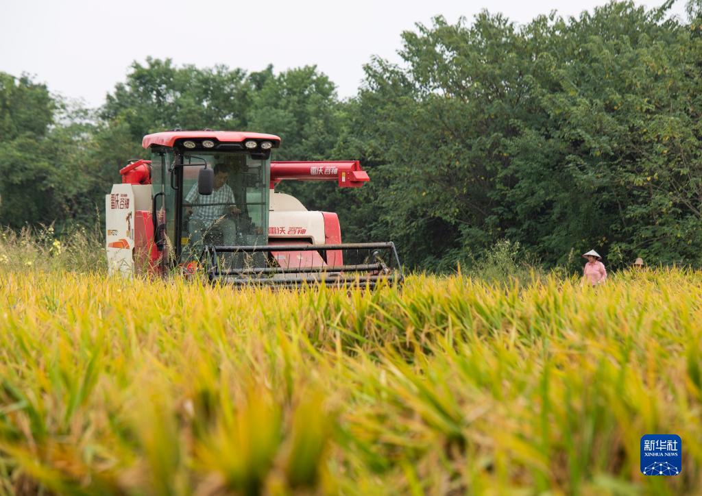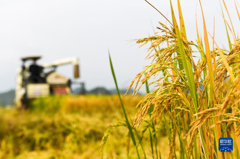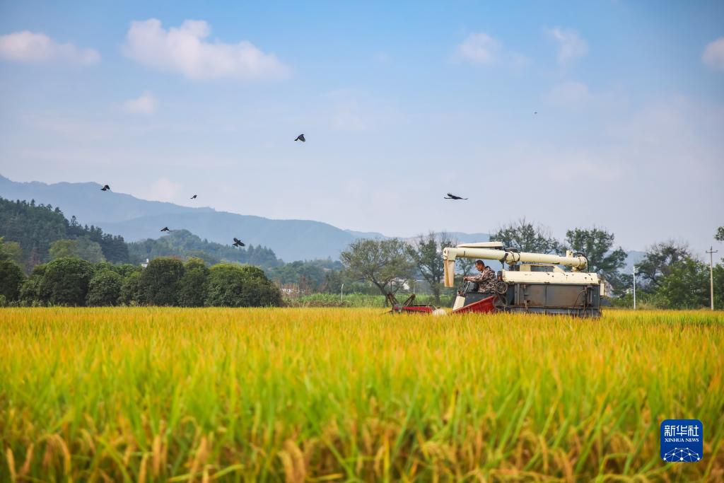 10月12日,在湖南省永州市道县寿雁镇芽洞村,农民驾驶农机收割晚稻。
