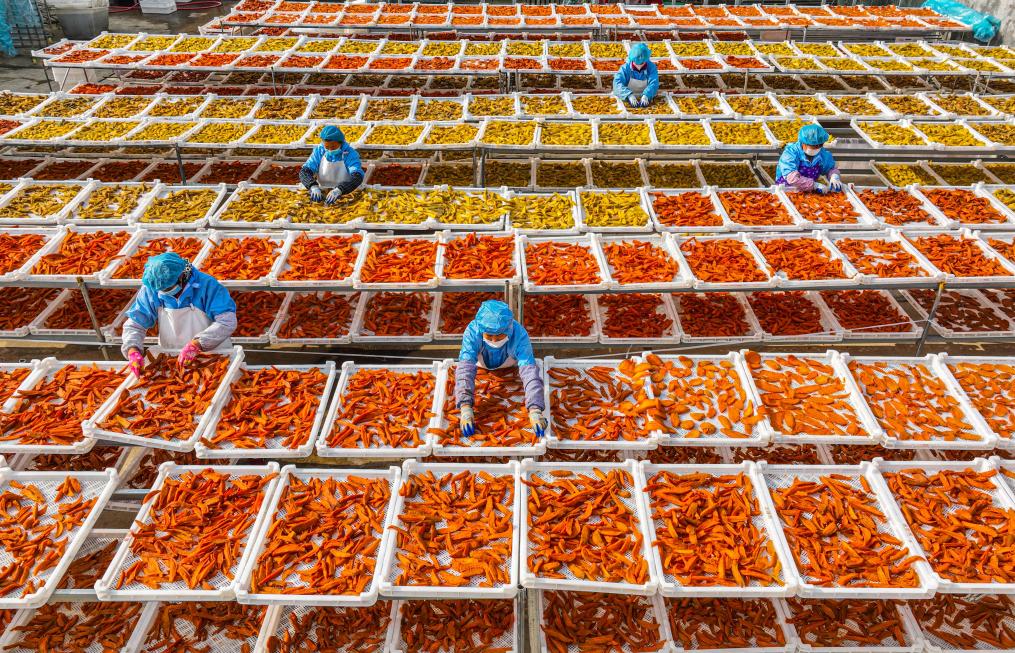 图为威海荣成市埠柳镇的甘薯晾晒车间。新华社发(李信君 摄)