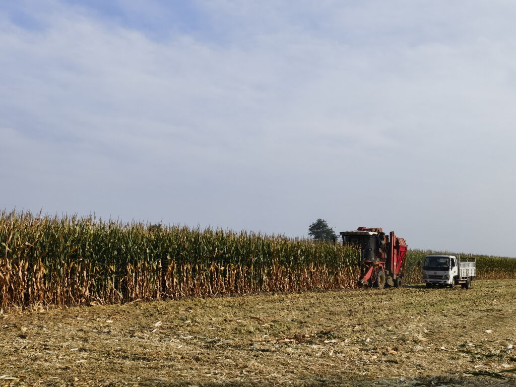金秋时节,地处渤海之滨的山东省潍坊市滨海经济技术开发区大家洼街道石桥村,伴随着机器的轰鸣声,多辆联合收割机开足马力穿梭于金色的玉米田间,一次性完成摘穗、剥皮、果穗装车和秸秆还田,秸秆粉碎后的阵阵清香扑面而来,一派丰收的繁忙景象。