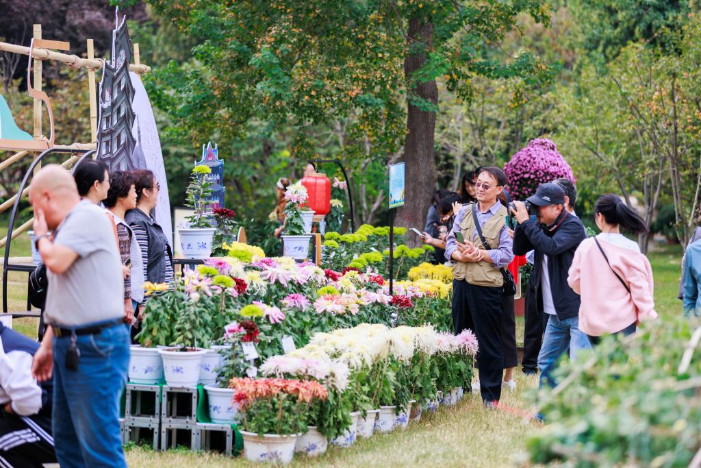 游客在中国开封第41届菊花文化节景区内打卡拍照。(受访单位供图)