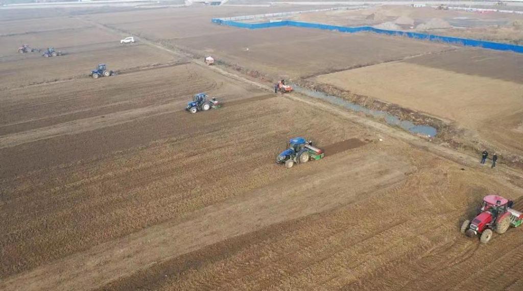 青岛西海岸新区营楼村,农机进行冬小麦播后管理作业。新华社记者王阳 摄