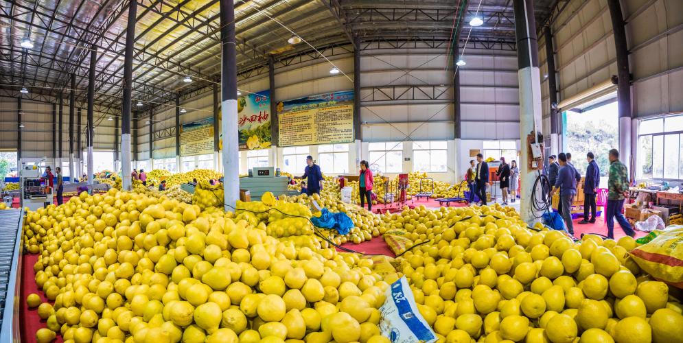 初冬,南国依然暖阳高照。在广西玉林市容县的山坡上望去,一片片柚子林尽收眼底,黄灿灿的柚子缀满枝头,村民们正在果园忙碌。往来的货车络绎不绝,不少客商到果园收购沙田柚。