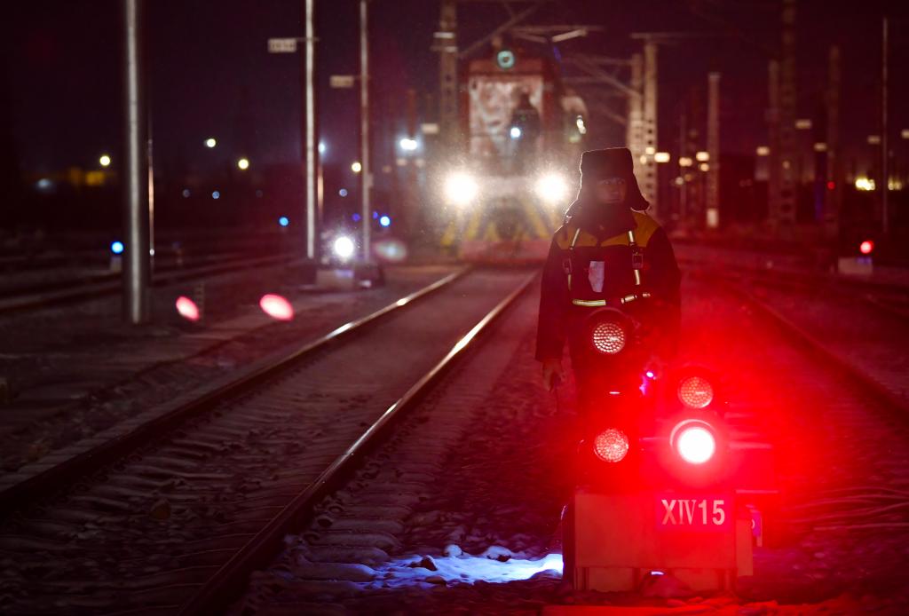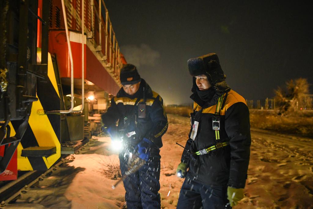 寒冬时节,零下10摄氏度的新疆霍尔果斯铁路口岸,下起了鹅毛大雪。凌晨3点,在完成了40多项安全检查后,28岁的库尔肯·马乌列提和他的同事开始了风雪夜里的“挑战”。