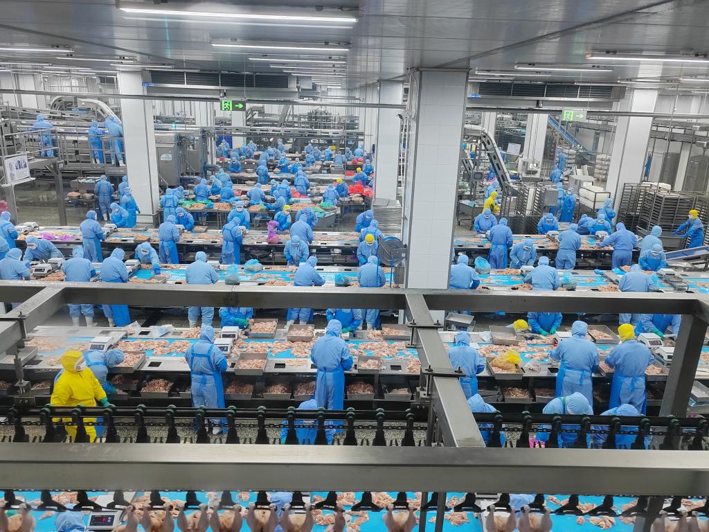 在春雪食品集团股份有限公司,工人们在生产线上忙碌。新华社记者张武岳 摄