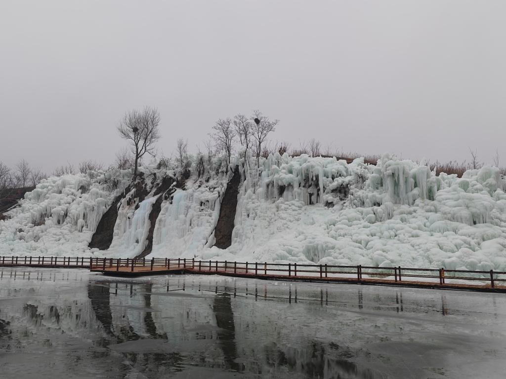 南张夼村“山水田园”景区的“冰瀑”景象。新华社记者张武岳 摄