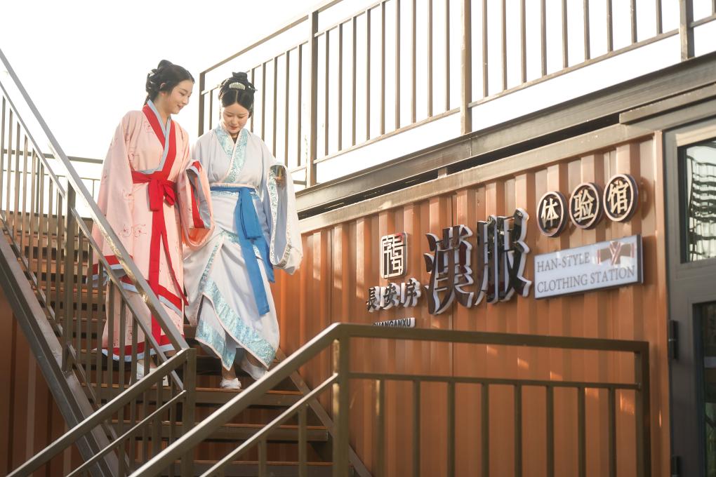 身着汉代服饰的游客在未央宫景区游览。(汉长安城未央宫国家考古遗址公园供图)