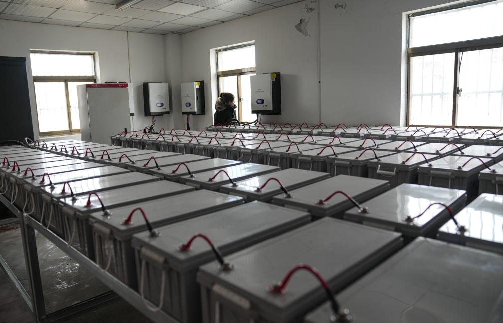 聂荣县铜龙村工作人员在查看光伏蓄电池工作状态(1月29日摄)。 新华社记者 晋美多吉 摄