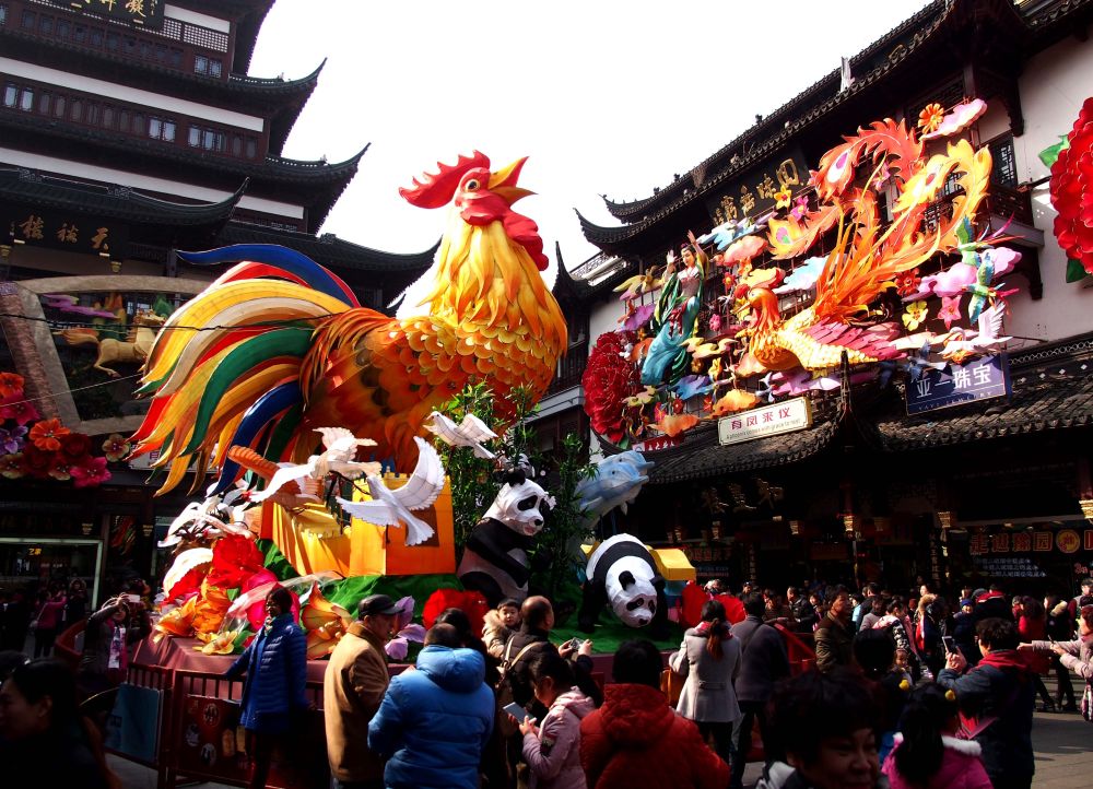 ↑上海豫园2017年鸡年灯会。