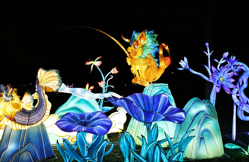 众多以生肖龙和《山海经》神兽为设计蓝本的彩灯