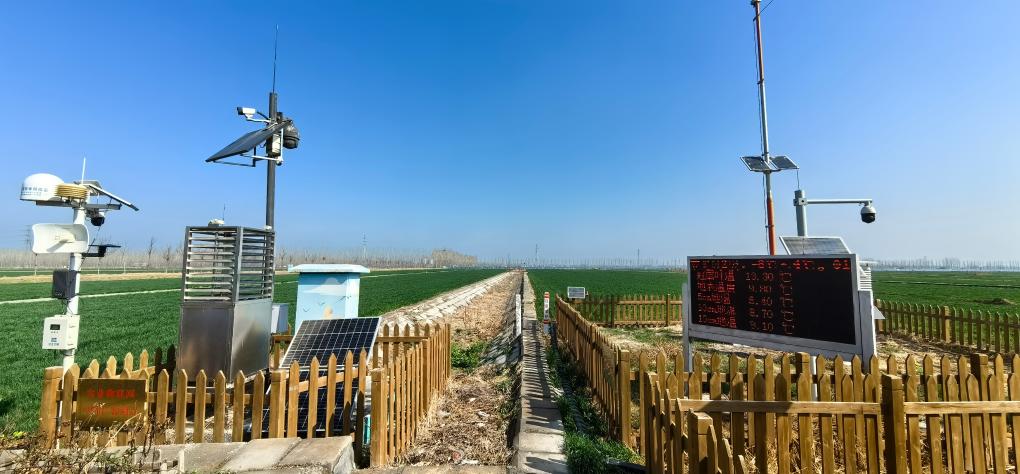齐河县粮食绿色高质高效(吨半粮)核心区内设置的农情信息采集设备。新华社记者叶婧 摄