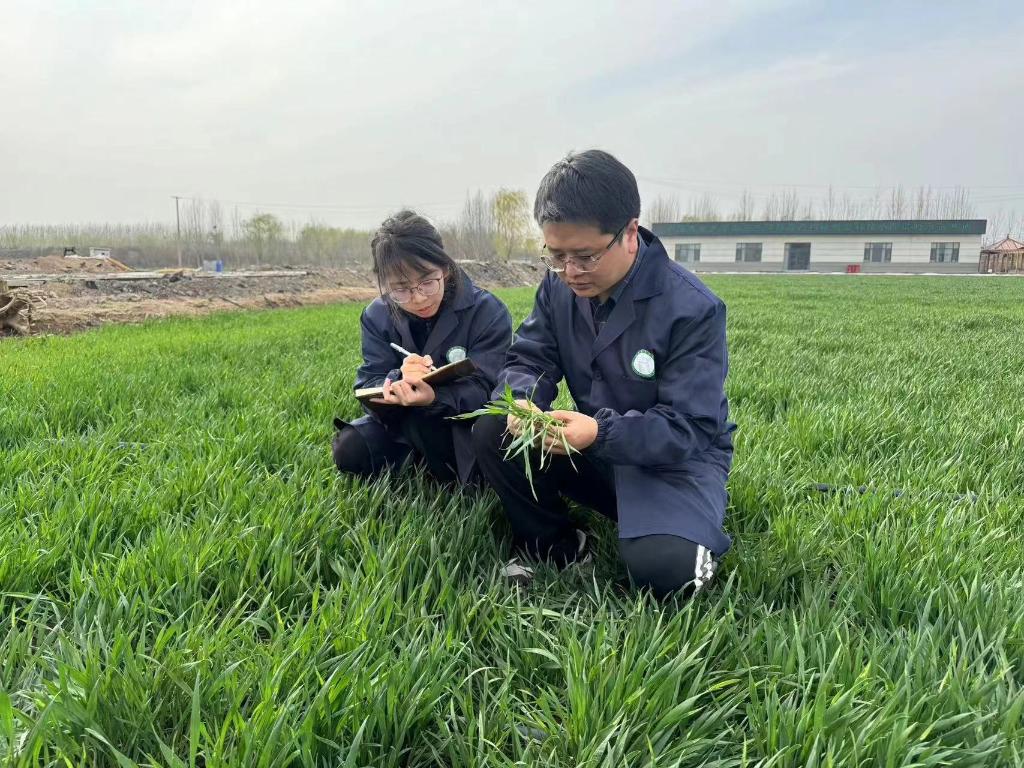 眼下,在科技小院的试验示范基地里,麦苗如绿毯般铺展,正进入拔节时期。记者看到,基地被划分为超吨粮技术集成攻关、小麦高产新品种、抗逆丰产高效化控技术、水肥一体化技术、秸秆还田轮耕技术等不同地块的试验展示田,师生正研究每项农技的最适落地方案。
