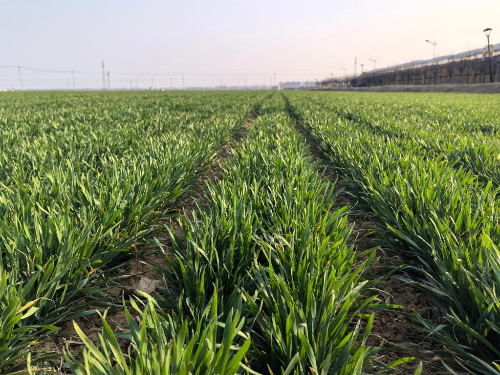 汶上县雷沃农业机械农民专业合作社管理的麦田里,麦苗长势正好。(新华社记者叶婧 摄)