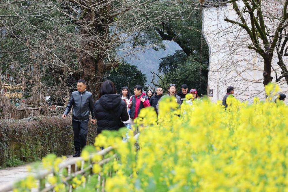 游客在婺源篁岭游览油菜花。新华社发(王晓震摄)