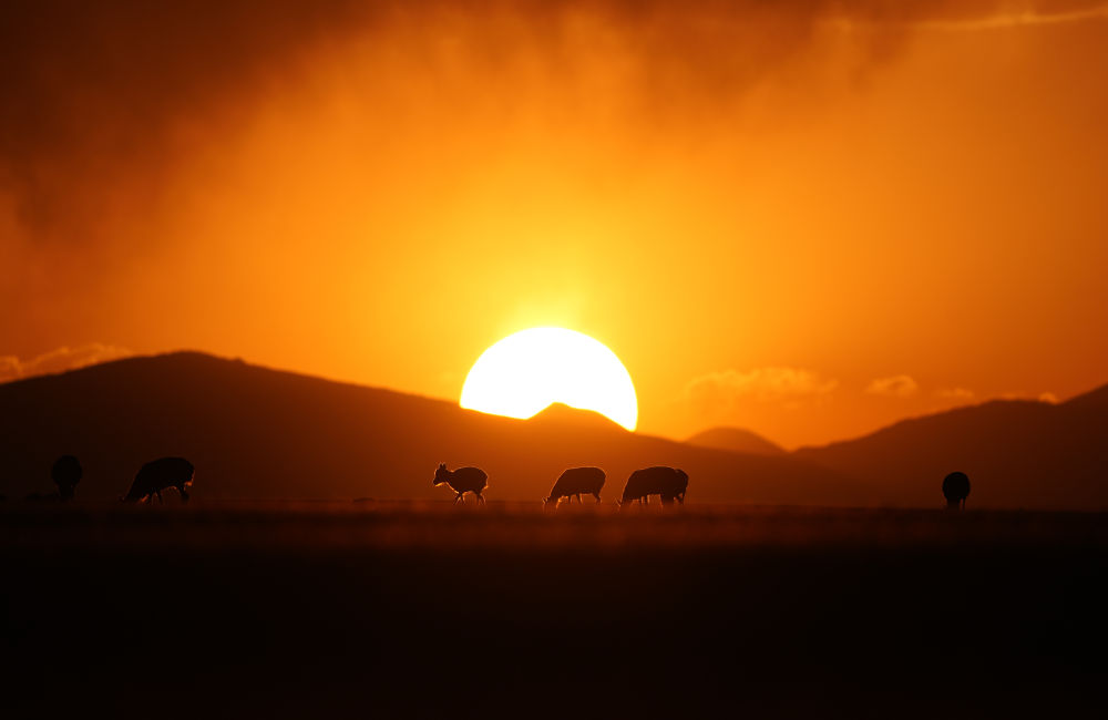 这是2024年6月16日在西藏那曲市申扎县买巴乡鲁确塘草原上拍摄的夕阳下的母藏羚羊。