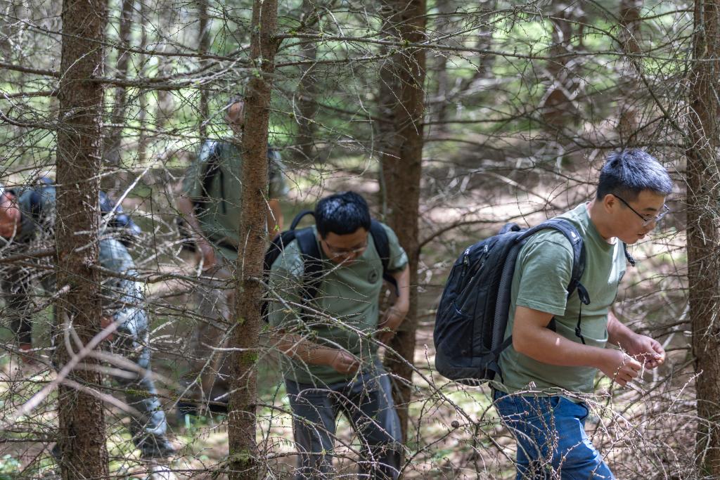 2024年6月5日,在西藏自治区昌都市芒康县林业产业扶贫苗圃基地,重庆雪宝山国家级自然保护区管理事务中心的工作人员记录栽种完成后崖柏幼苗的数据。由科研团队选送的1000株崖柏幼苗已在西藏自治区昌都市完成适应性栽培。新华社发(郑宇 摄)