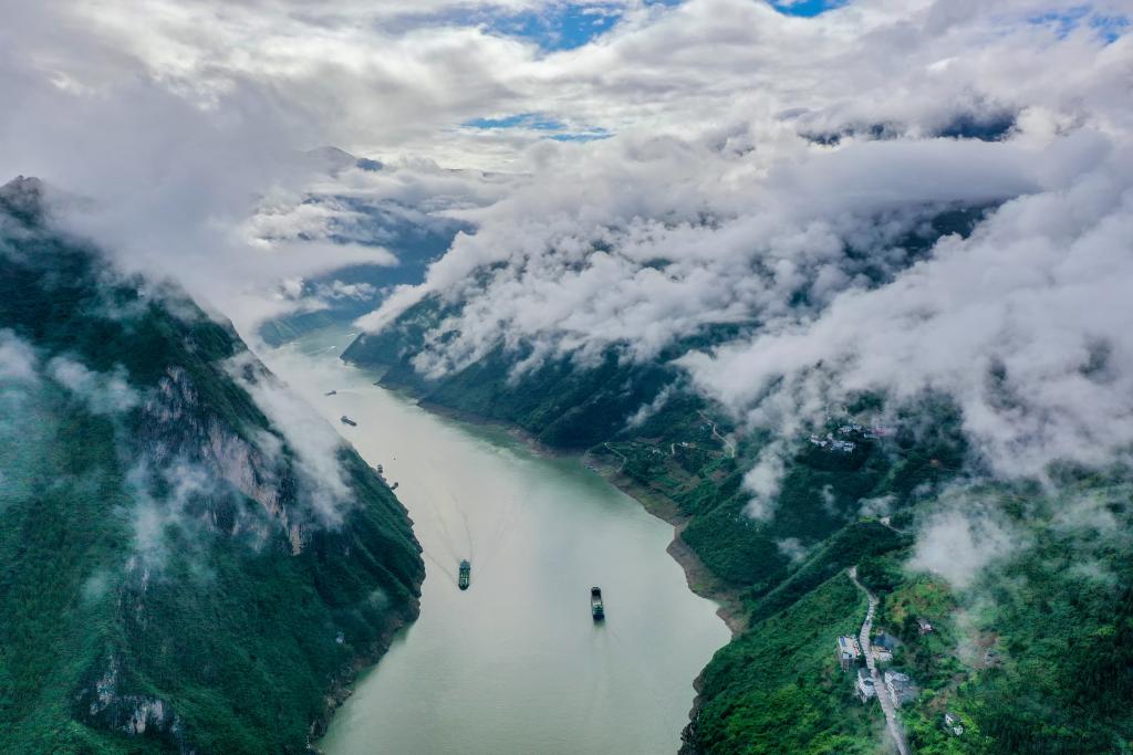 这是2023年6月30日在重庆市巫山县拍摄的长江三峡巫峡段景色(无人机照片)。