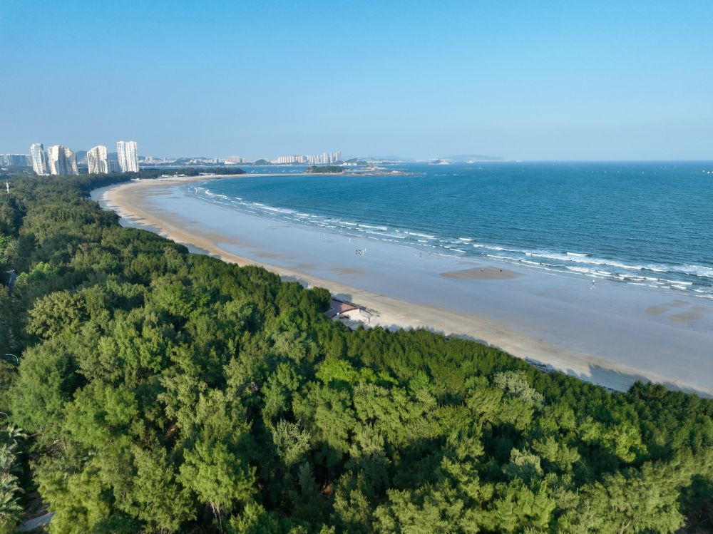 拼版照片,上图为昔日的东山县东门屿鹰嘴岩附近风貌(资料照片),下图为2018年10月17日拍摄的东门屿鹰嘴岩附近风貌。