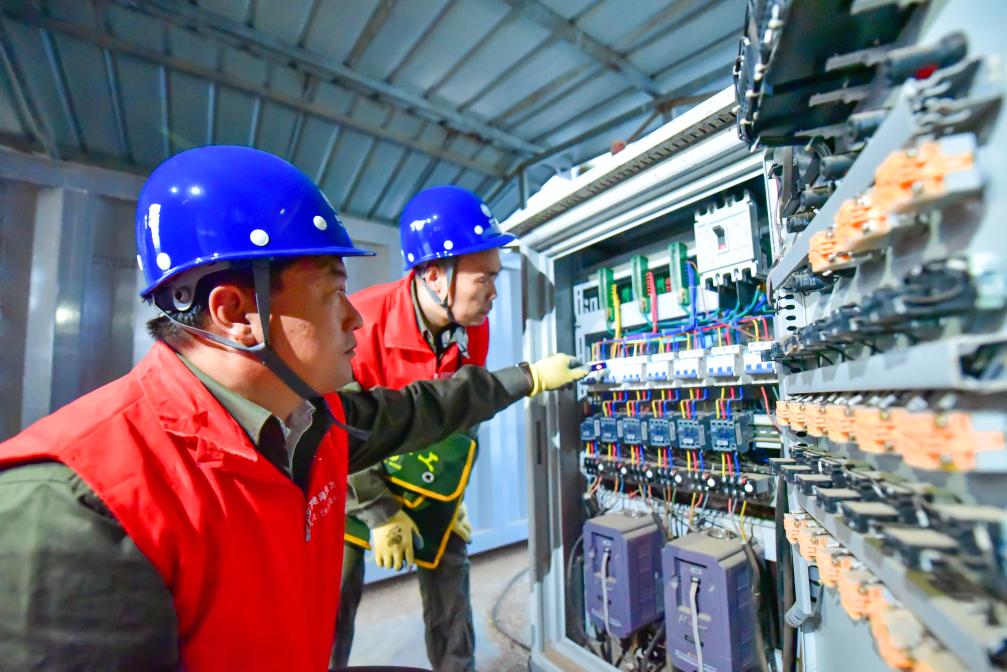 国网邯郸市肥乡区供电公司工作人员利用晚间时间帮助粮食烘干企业检查用电线路。(受访者供图)