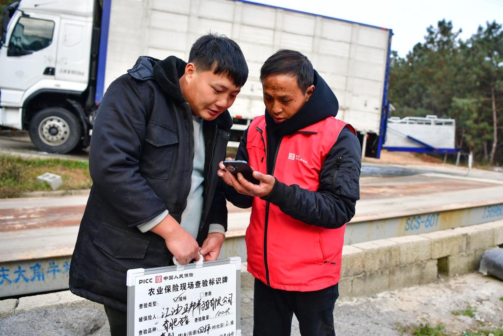 12月12日,在四川省凉山彝族自治州冕宁县,理赔人员正在“川农保”App上为被保人下单。新华社记者张超群 摄