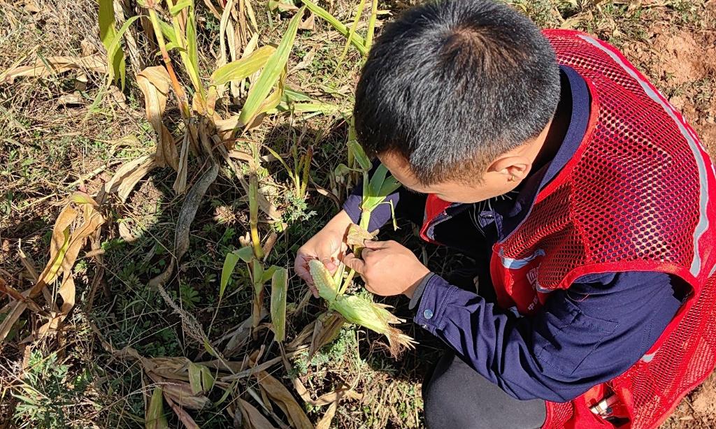 承保单位中国人民财产保险股份有限公司会东支公司的理赔人员赶到后,迅速对禄兴萍家的受灾玉米进行查勘,并用无人机对玉米地航拍取证。