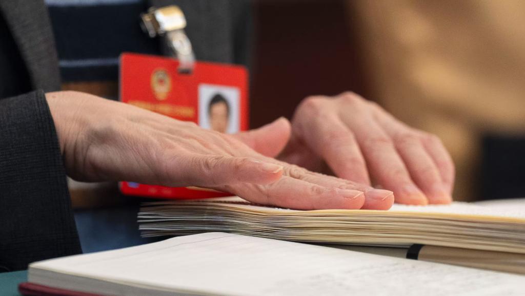 “这份政府工作报告沉甸甸的,上面的盲文凹凸不平,我想请大家都来触摸一下,感受全过程人民民主的温度。”