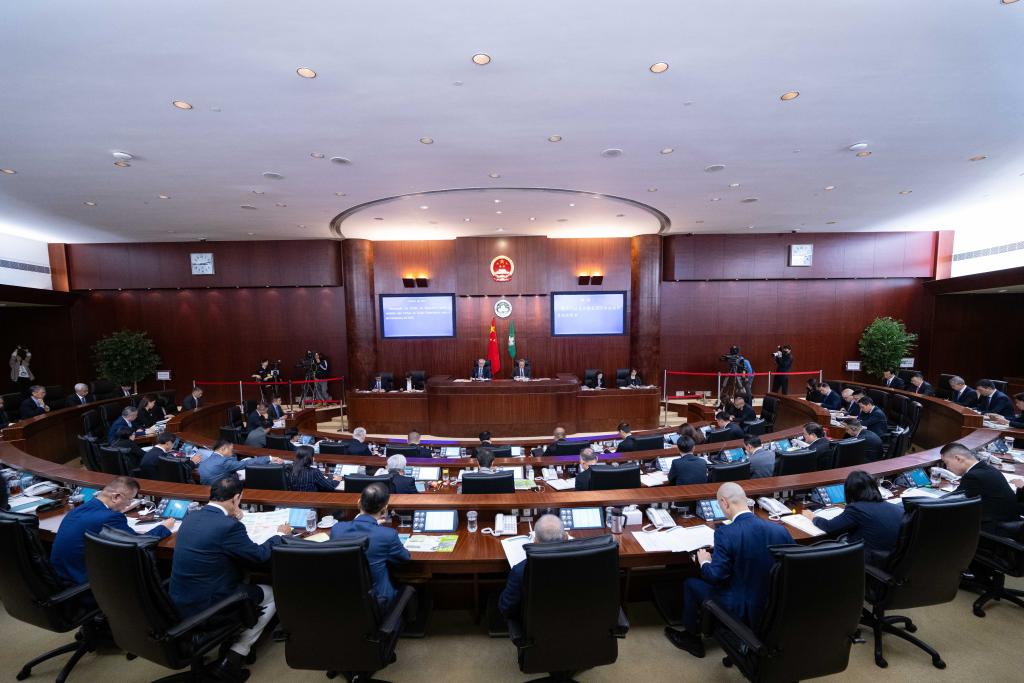 4月14日,澳门特区行政长官岑浩辉在特区立法会发表2025年财政年度施政报告。新华社发(张金加摄)