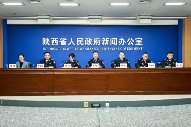 12月17日上午,陕西省政府新闻办公室召开新闻发布会,省公安厅常务副厅长、新闻发言人杨尚伟就全省公安机关开展“十大行动”护航陕西高质量发展情况进行了通报,省公安厅治安总队政委刘锐、刑侦总队政委钟霞、交管总队总队长马步理、网安总队政委刘志昌、环食药总队(知识产权总队)总队长席锋参加发布会并回答记者提问。发布会由陕西省委宣传部新闻发布工作处处长周颖主持。新华社、人民日报、中央广播电视总台、中国新闻社、法治日报、陕西日报、陕西广播电视台等30余家中省新闻媒体受邀参加了发布会。