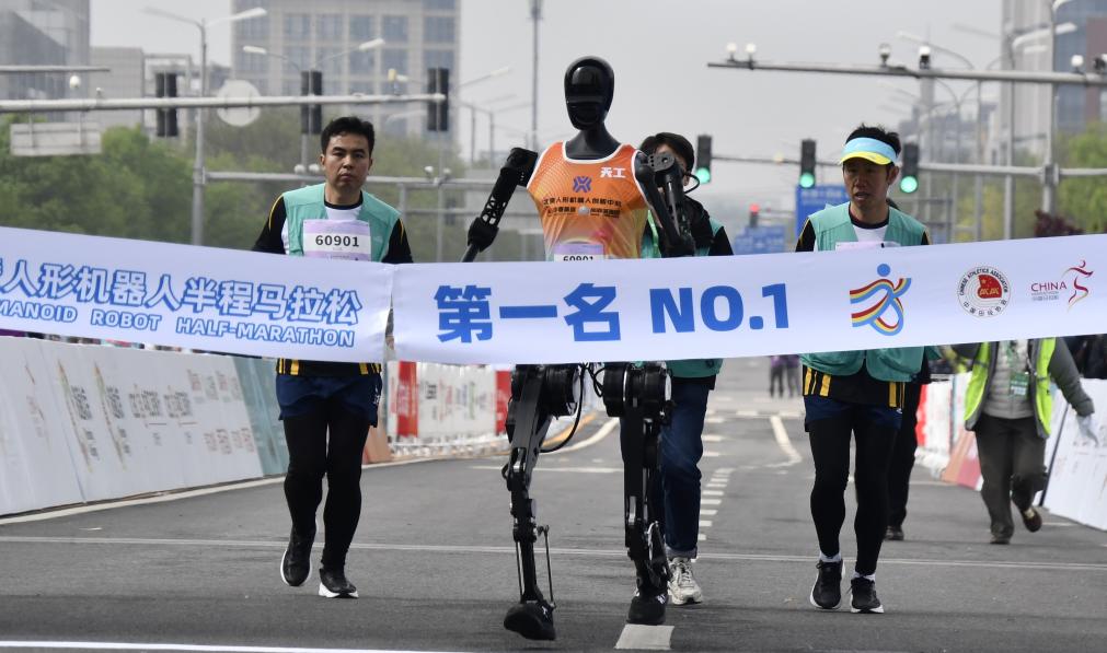 4月19日,全球首个人形机器人半程马拉松赛在北京举行。在21.0975公里的赛道上,首次“人机共跑”,来自高校、科研机构、企业的20支机器人队伍参赛。